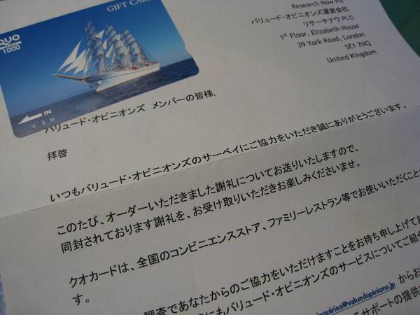 もうひとつは、アンケートサイトのバリュード・オピニオンズでちまちまとポイントが溜まって